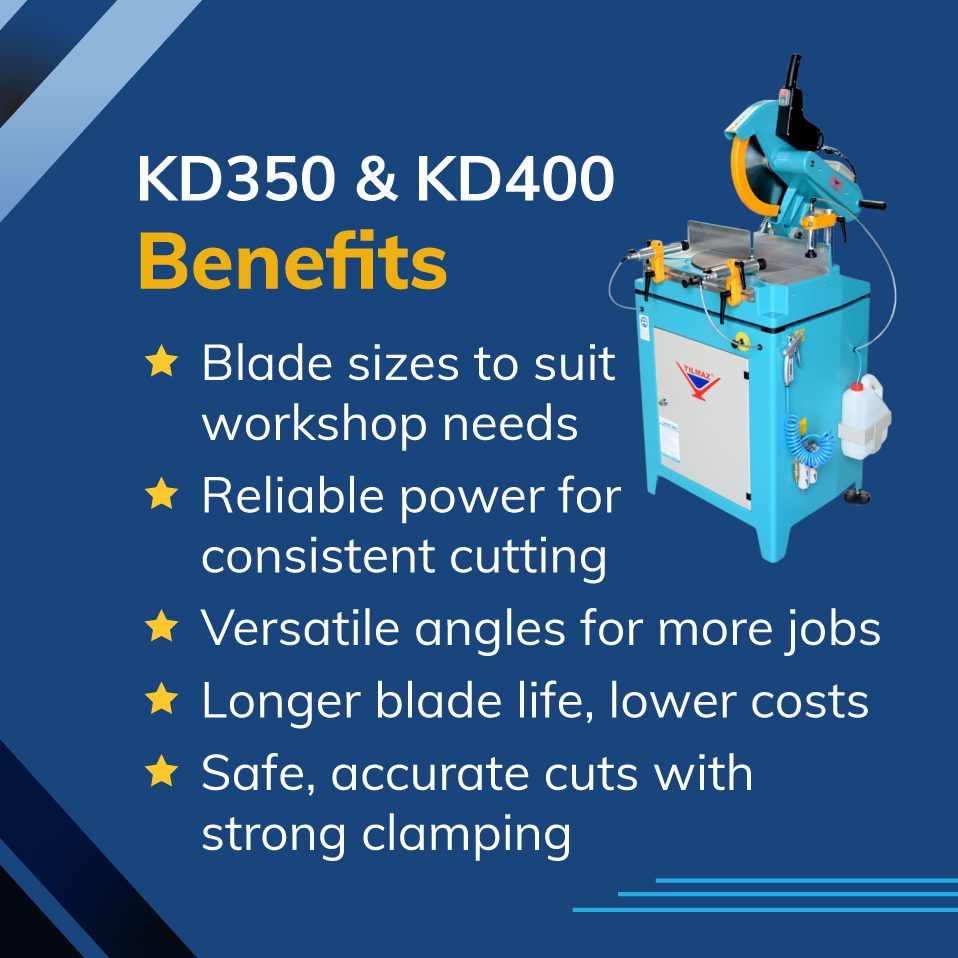Each machine in the KD series is designed to deliver practical workshop advantages that go beyond precision cutting. The KD350 provides accuracy and stability for everyday fabrication, while the KD400 meets the demands of higher-volume commercial and industrial jobs.